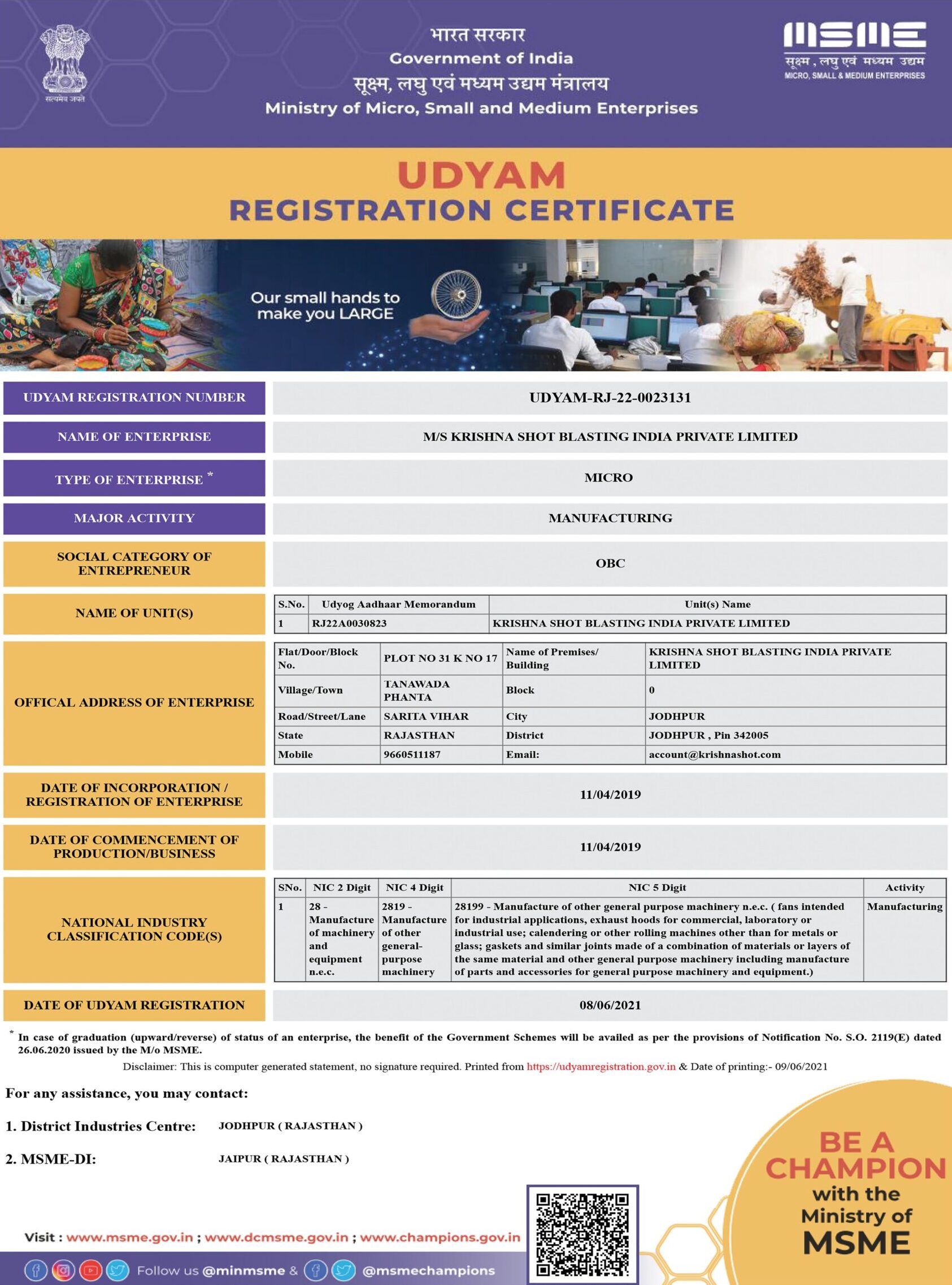 Krishna Shot Blasting (I) Pvt. Ltd. was established in 2004 by our founder Mr. Badri Malviya. KSB has always operated on 4 strong pillars of Trust , Honesty Innovation and Quality